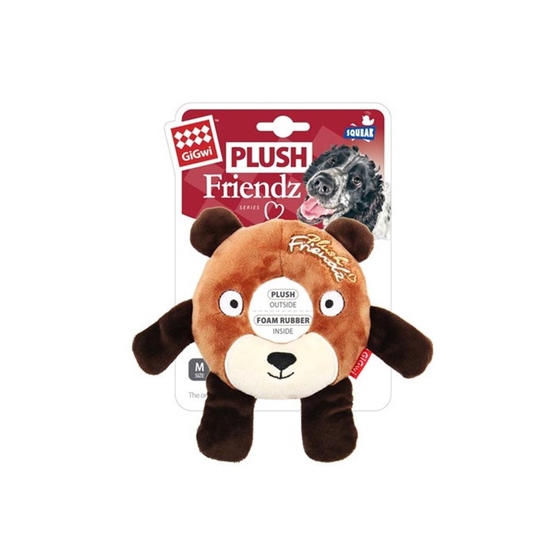 El Plush Friendz Oso M con forma de donut GiGwi es un bonito y divertido juguete con el que tu perro disfrutará cada día. Es ideal para tirárselo y que lo recoja, para morderlo o para acurrucarse junto a él; se convertirá en el compañero inseparable de tu mascota. La textura suave les encanta y la consistencia blandita aún más. A pesar de la gran variedad de juguetes y materiales que existen para los perros, la mayoría siempre termina prefiriendo los peluches, por eso los animales en forma de donut de GiGwi son ideales. Son simpáticos y tienen bonitos y divertidos diseños: anillos con las caras de diferentes animales con orejas, patas, alas, cuernos, ojos saltones… Además, tienen sonido, ¡Son simplemente irresistibles! El Plush Friendz Oso M con forma de donut GiGwi es seguro para tu pequeño amigo cachorro y con un tamaño y forma que hacen que sea muy fáciles de transportar en la boca. Características: Material: felpa por fuera y espuma de caucho en el interior. Peso: 0.2 kg Materiales no tóxicos Juguete no indestructible. Juguete con sonido. Espacialmente diseñado para perros.
